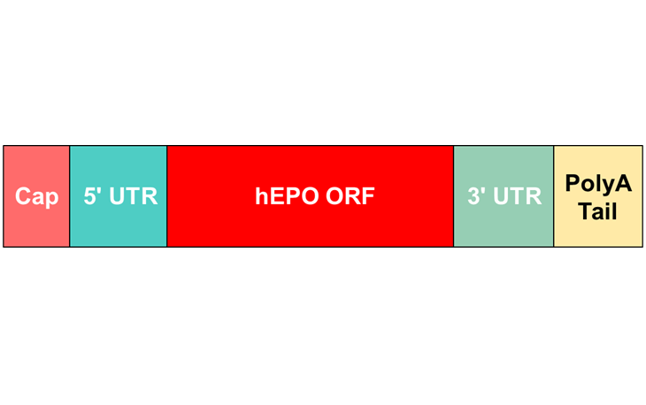 hEPO mRNA encodes human erythropoietin (EPO) that stimulates red blood cell production